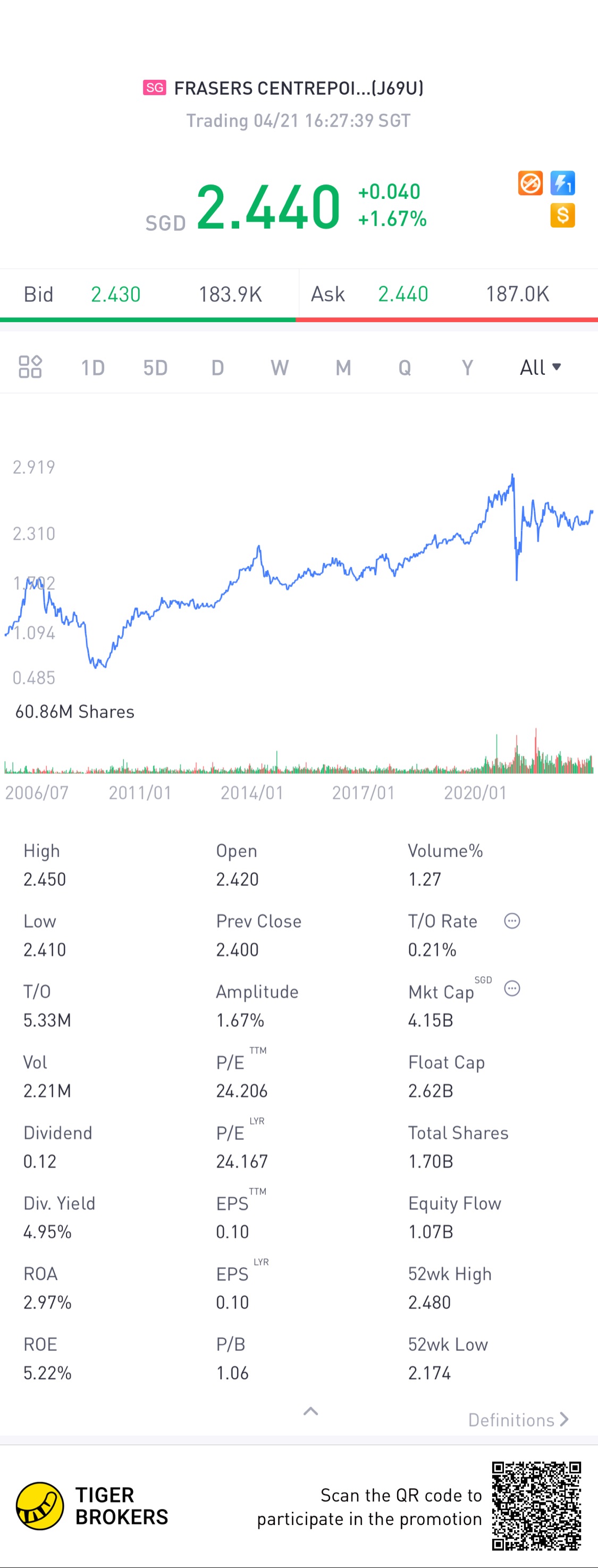 $FRASERS CENTREPOINT TRUST(J69U.SI)$This mall have many heartland malls in the heartlands, offering stable income to unit holders, a must look out for Company.