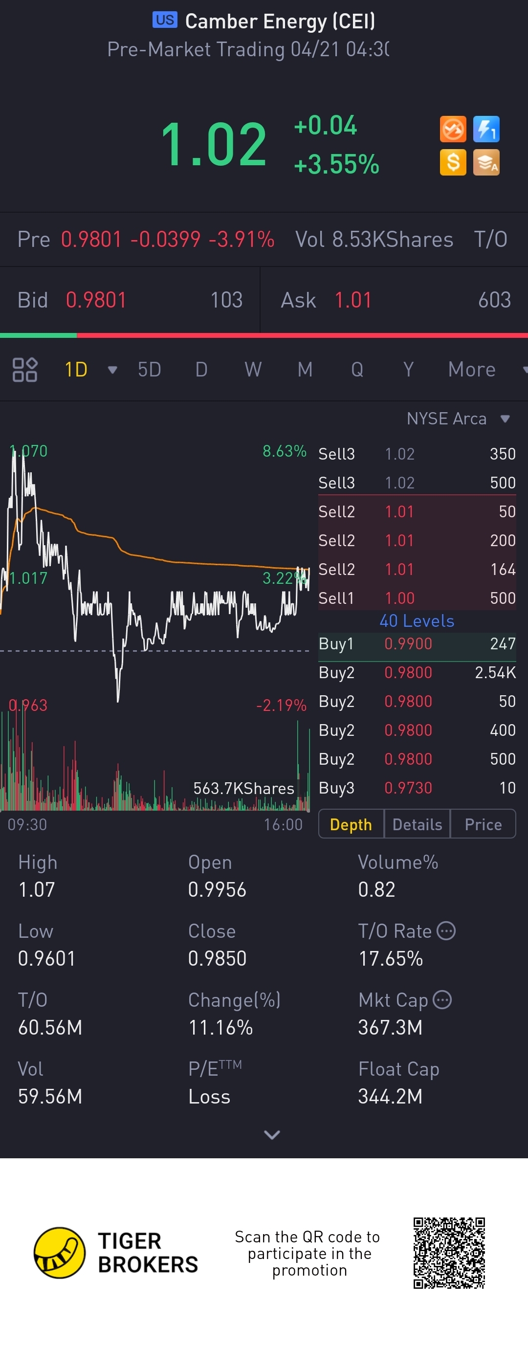 $Camber Energy(CEI)$will it goes pass 1.08 or consolidates at the range?