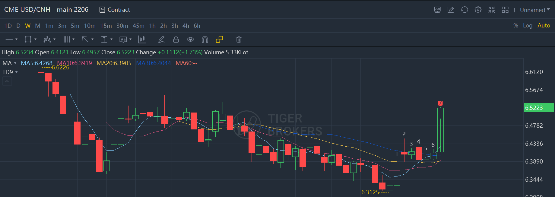 As of April 22, Tiger Trade $CME USD/CNH - main 2206(UCHmain)$ priced at 6.523,$Mini China Enterprises Index - main 2204(MCHmain)$ priced at 6.509.