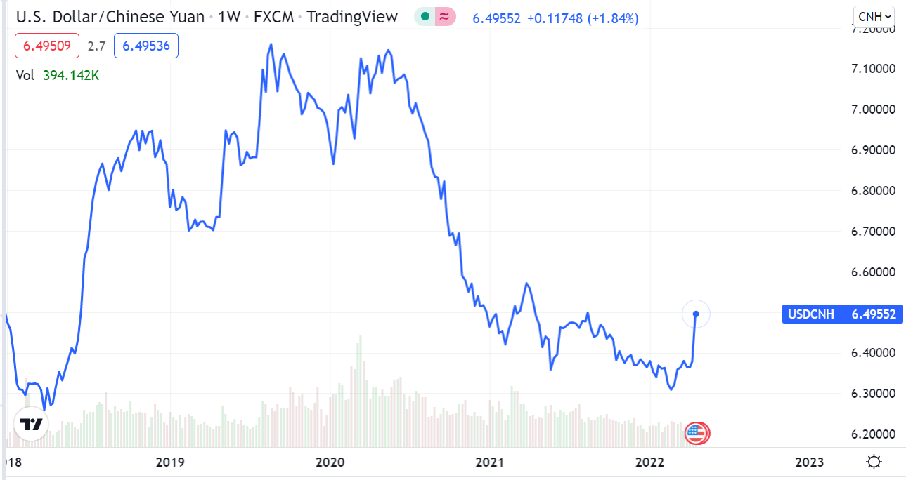 Since April 19, the USD/CNH has changed the sideways trend near 6.38 since mid-April and began to break through the important mark of 6.41 for four consecutive days. It is also the first time that the USD/CNH has touched the level of 6.49 since August 16th, 2021.