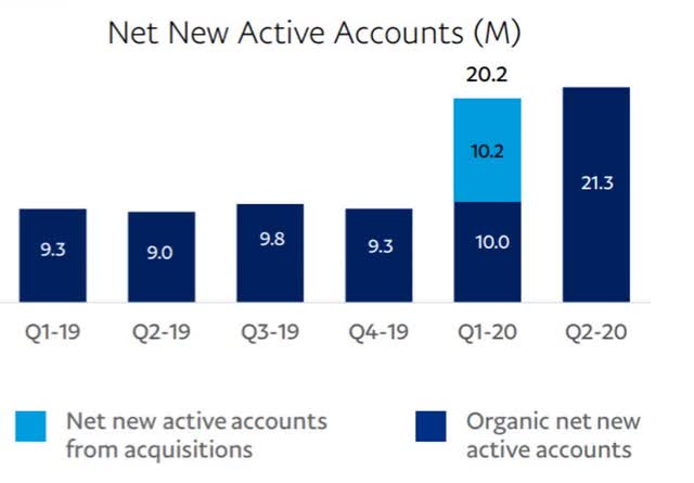 What readers must understand is that the 9.8 million in net new active accounts is not an organic figure: It includes 3.2 million accounts that were transferred to PayPal following the Paidy acquisition last year.