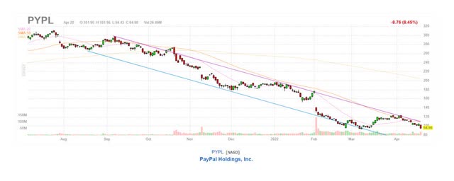 PayPal stock fell another 8.5% yesterday, indicating that investors are becoming increasingly concerned about the possibility of a recession.