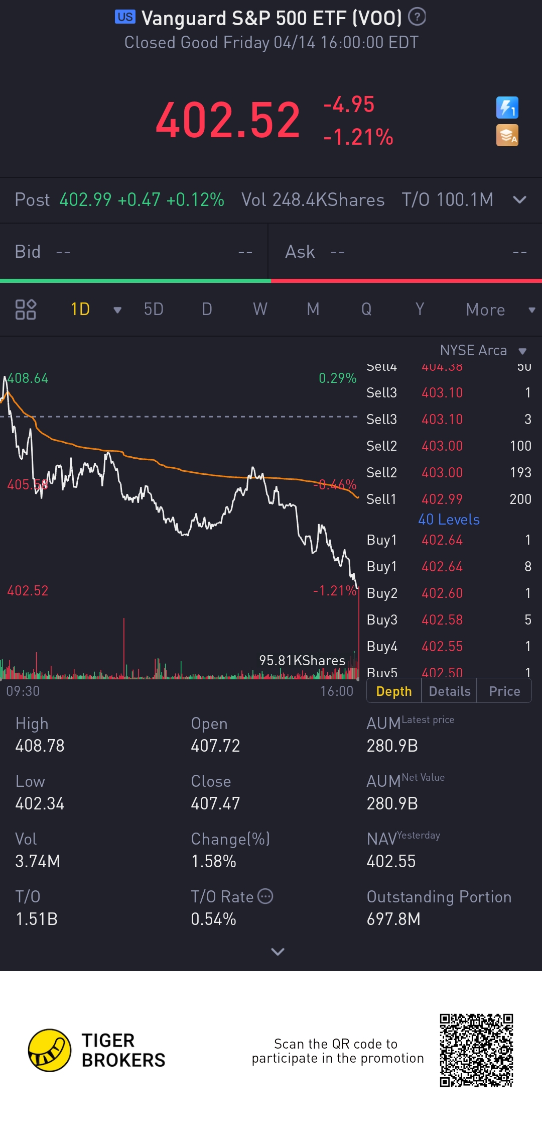 $Vanguard S&P 500 ETF(VOO)$Wait and see to get best price