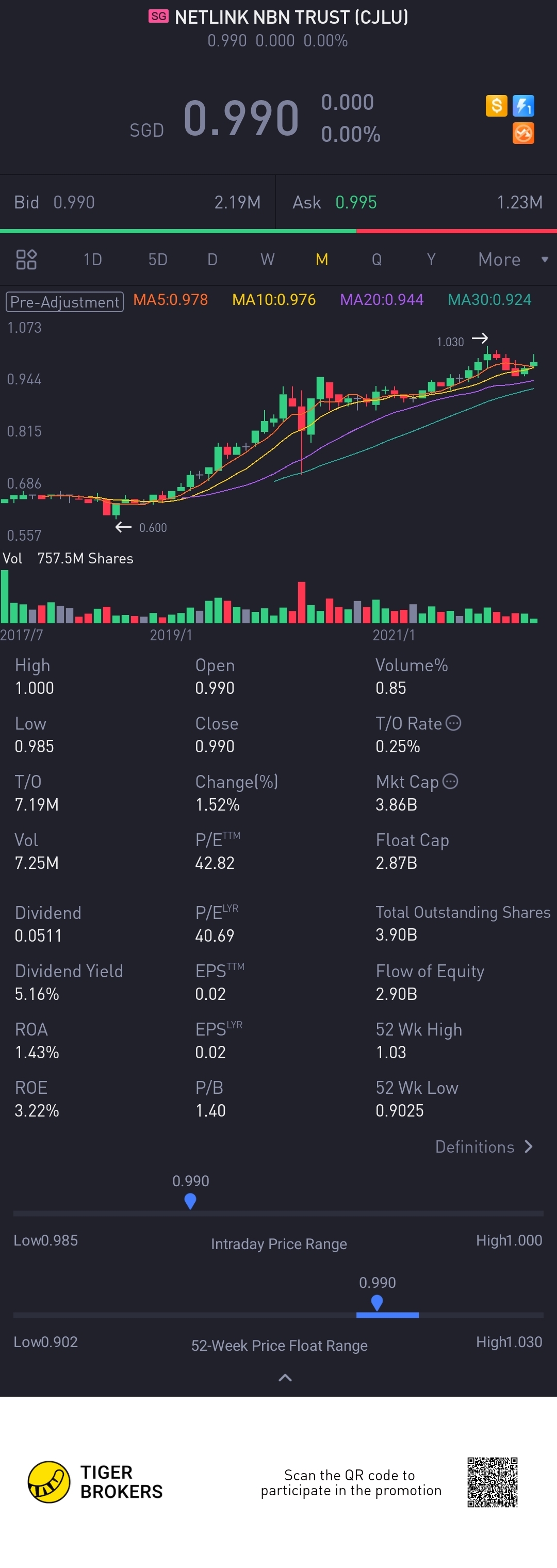 $NETLINK NBN TRUST(CJLU.SI)$5% yield