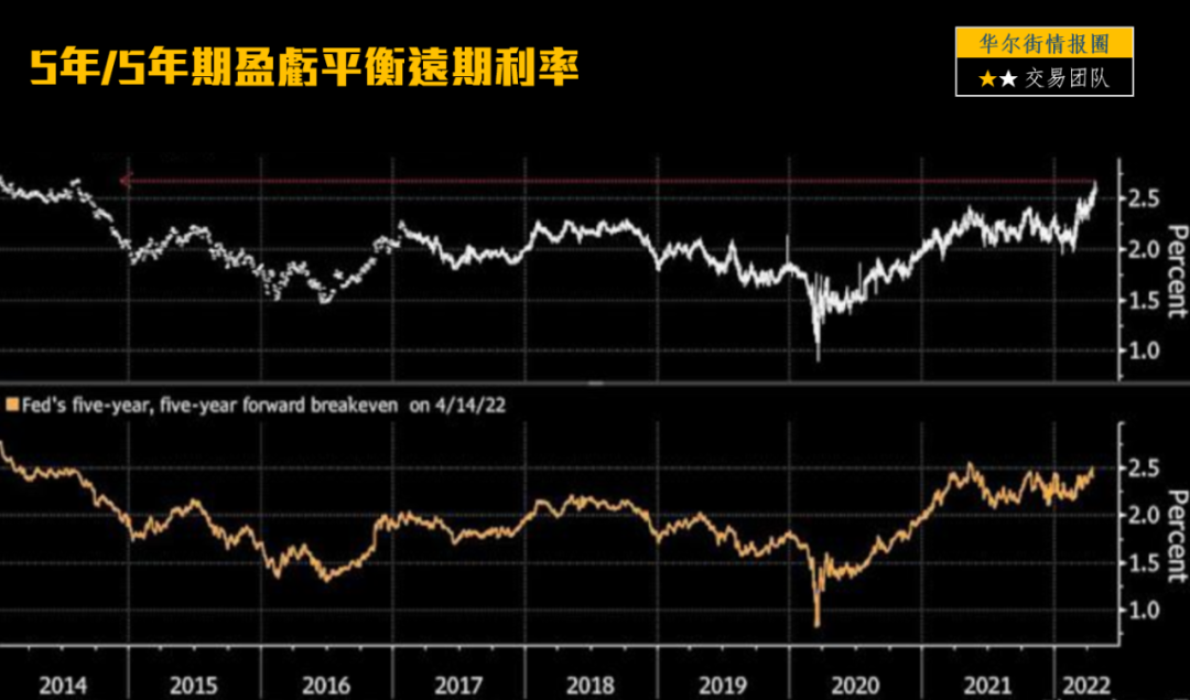 1) The current 5-year/5-year break-even forward interest rate reflecting inflation expectations in the next five years, It reached its highest level since mid-2014 (an indicator used by the Federal Reserve as a monetary guide), which can not only provide market views on forward inflation, but also reflect whether the market believes that there are enough ammunition in the central bank's policy toolbox to control inflation within the target range.