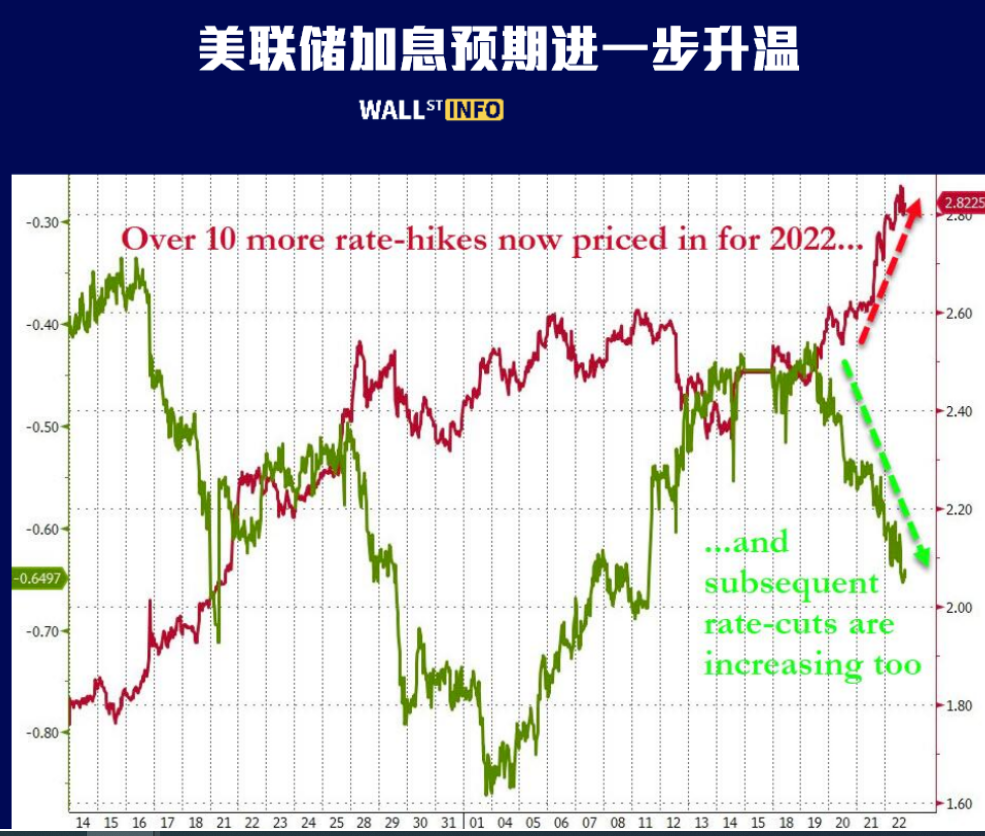 Investors have been dazed all day by the Fed's interest rate hike expectations. Have you ever thought of an imminent big problem-the market is increasingly uneasy about the possibility of Fed policy mistakes-when Fed officials propose to raise interest rates by 50 basis pointsThe market will immediately begin to try to price a 75 basis point rate hike; When Fed officials suggested two 50 basis point rate hikes, the market immediately set a price three times (it even reached four times last night).
