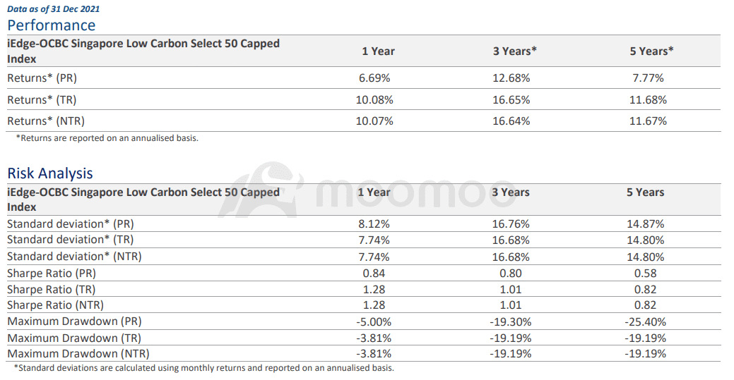 Source: iEdge-OCBC Singapore Low Carbon Select 50 Capped Index's factsheet as of 31st Dec 2021