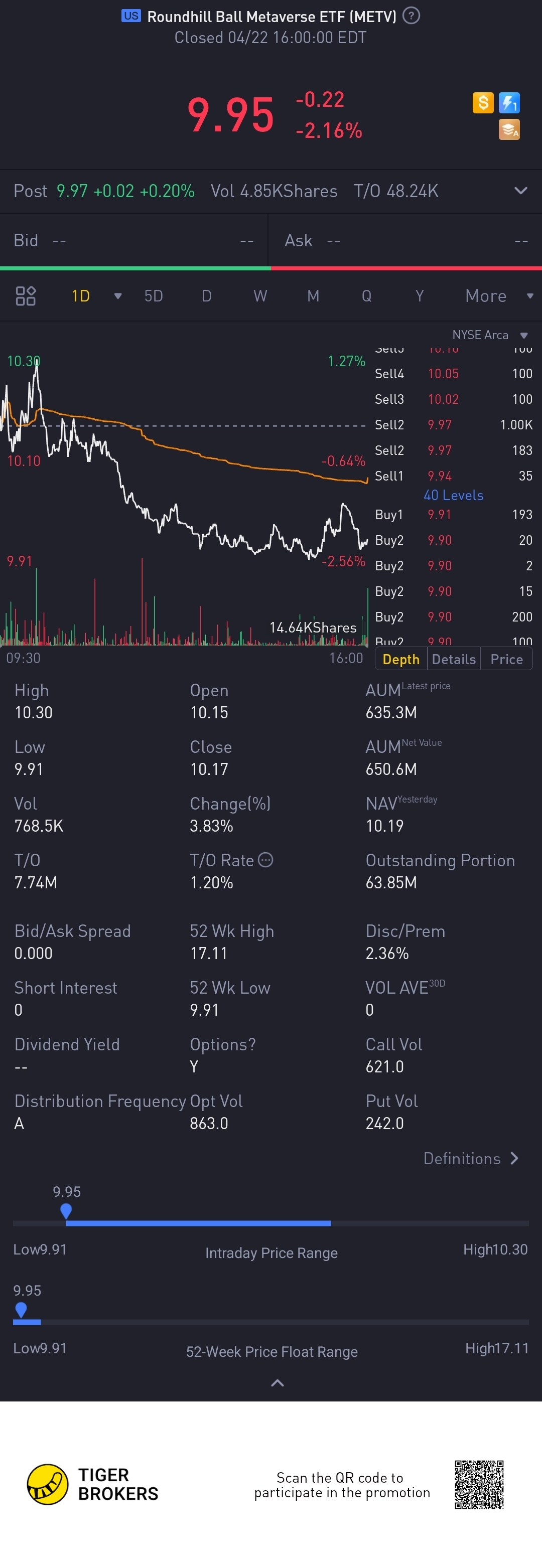 $Roundhill Ball Metaverse ETF(METV)$wow below 10