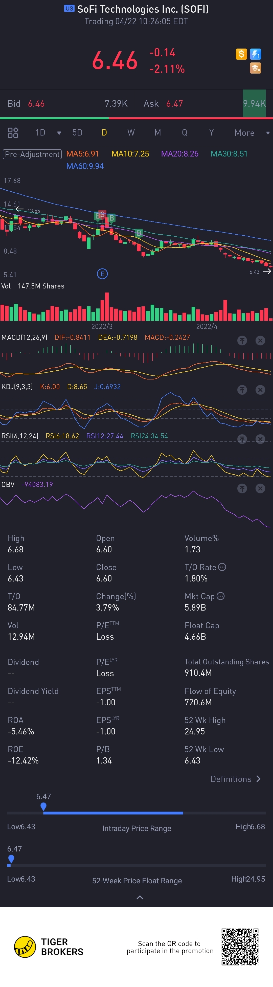 $SoFi Technologies Inc.(SOFI)$ continue downtrend. Avoid for now