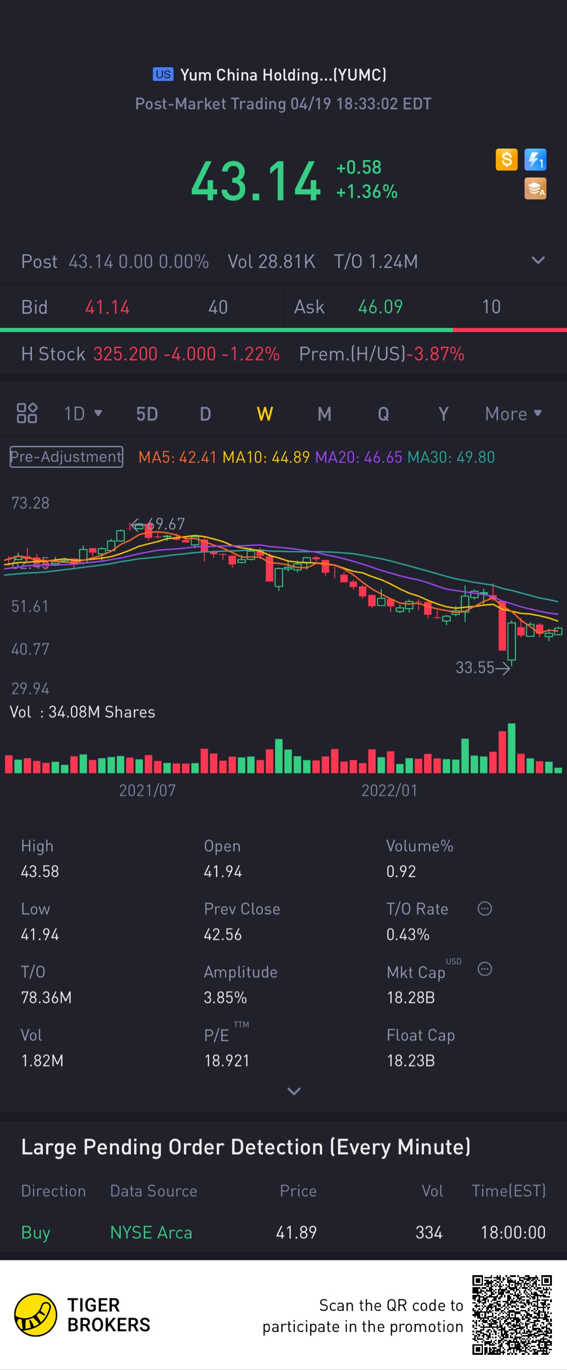 $Yum China Holdings, Inc.(YUMC)$Upup