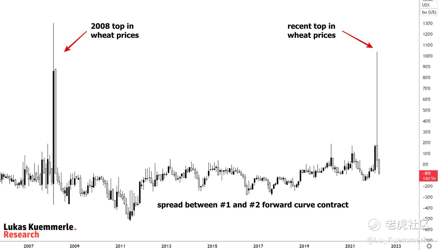 But in my experience, an extreme backwardation, especially between the first and second contract on the forward curve, signals tops and bottoms in the market as well. Here is a great example we saw recently in the wheat market.