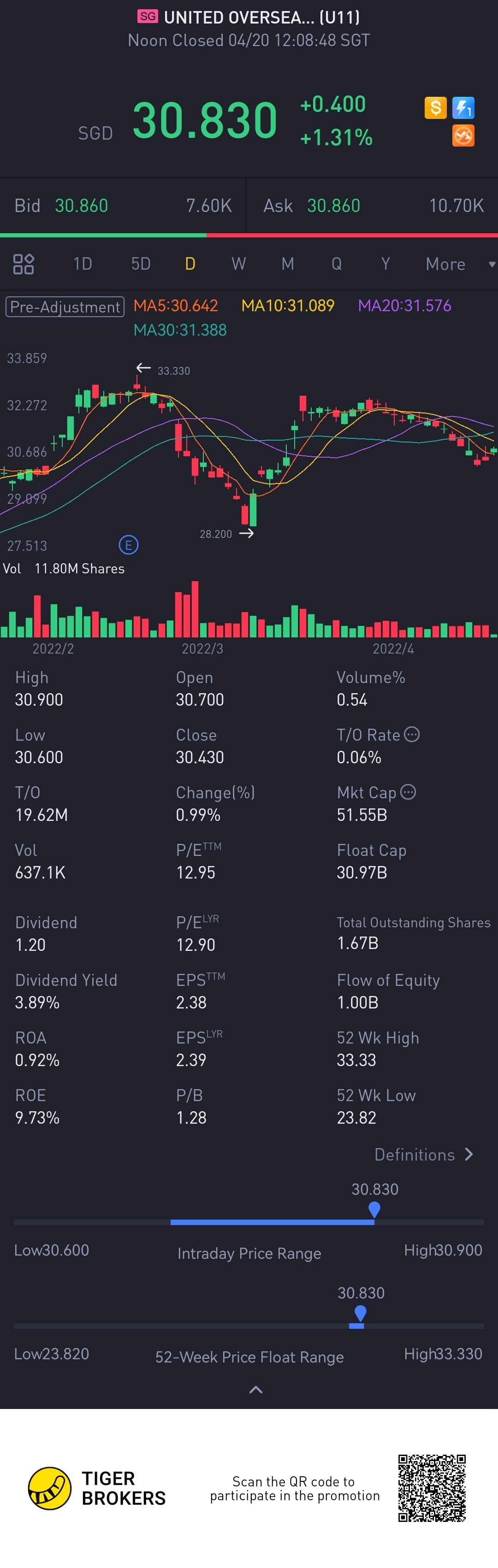 $UNITED OVERSEAS BANK LIMITED(U11.SI)$ dividend is round the corner