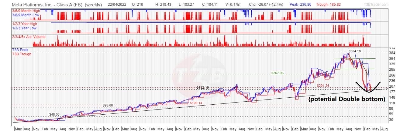 $Meta Platforms, Inc.(FB)$Technical charts for meta platform lands on the uptrend line supported at current price which has drawdown from 52.86% from all time high at 384. Grossly undervalue.
