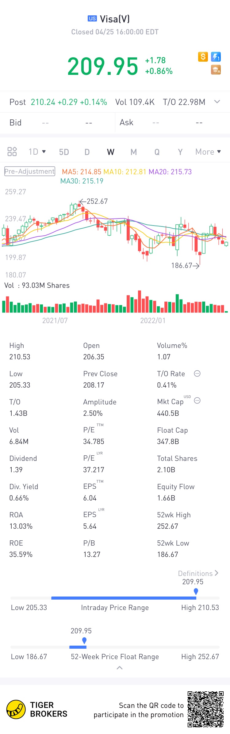 $Visa(V)$Due to release its earnings today. May be a prelude to the earnings of the other payment platforms