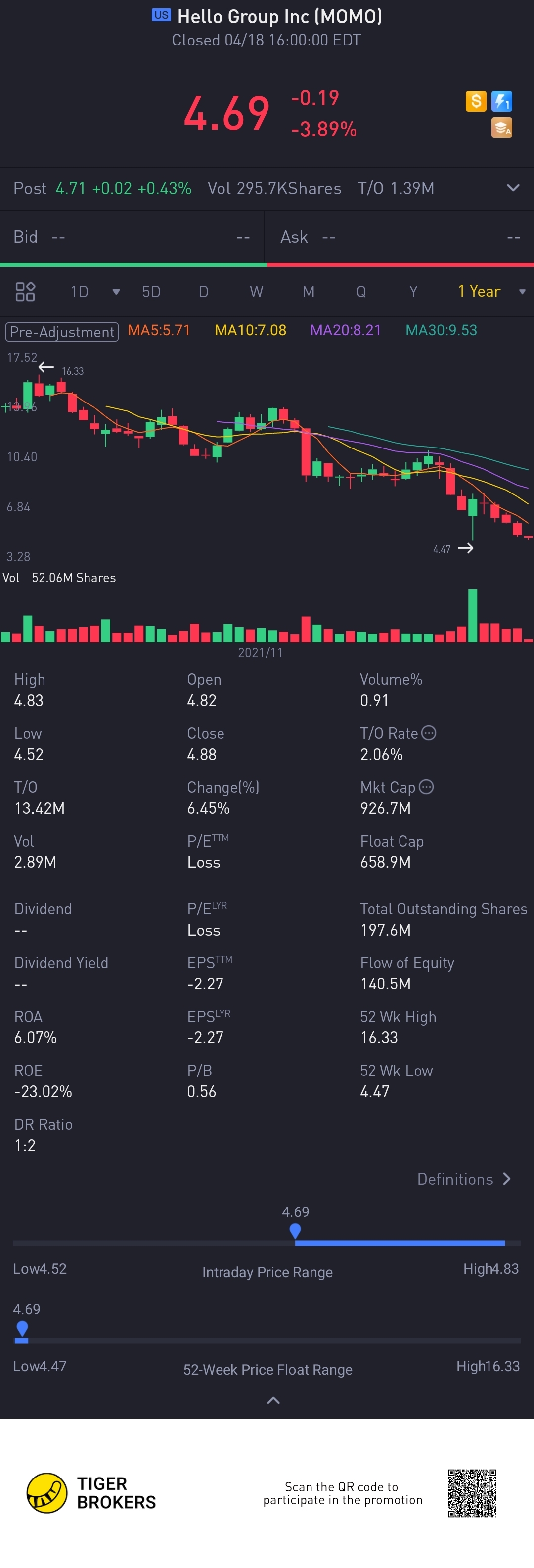 $Hello Group Inc(MOMO)$[Surprised] [Surprised] [Surprised]