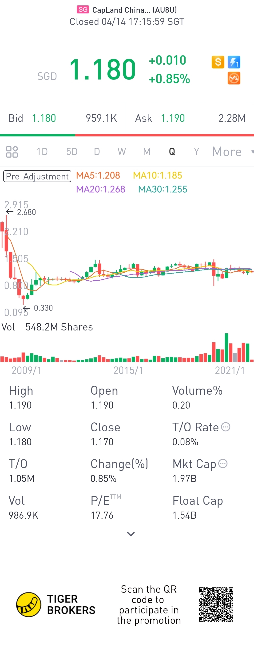 $CapLand China T(AU8U.SI)$ this is another high dividend yield stock, at this price the yield is 7 %