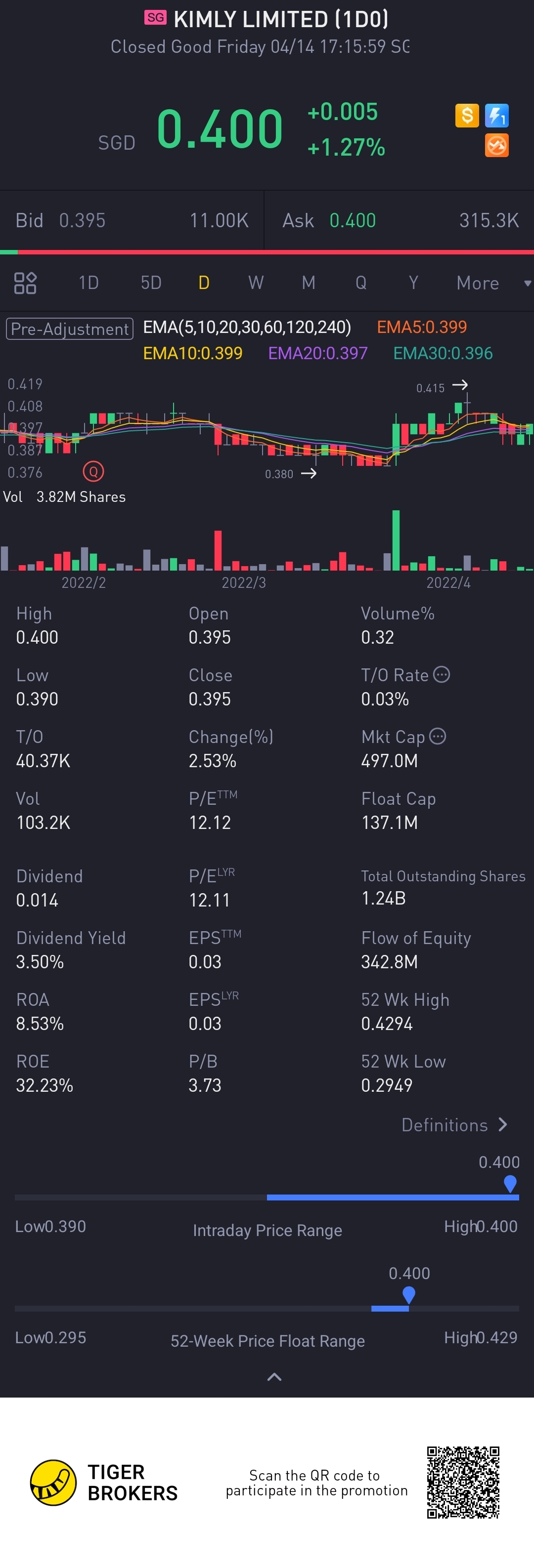 $KIMLY LIMITED(1D0.SI)$seem good and benefit from opening of Singapore