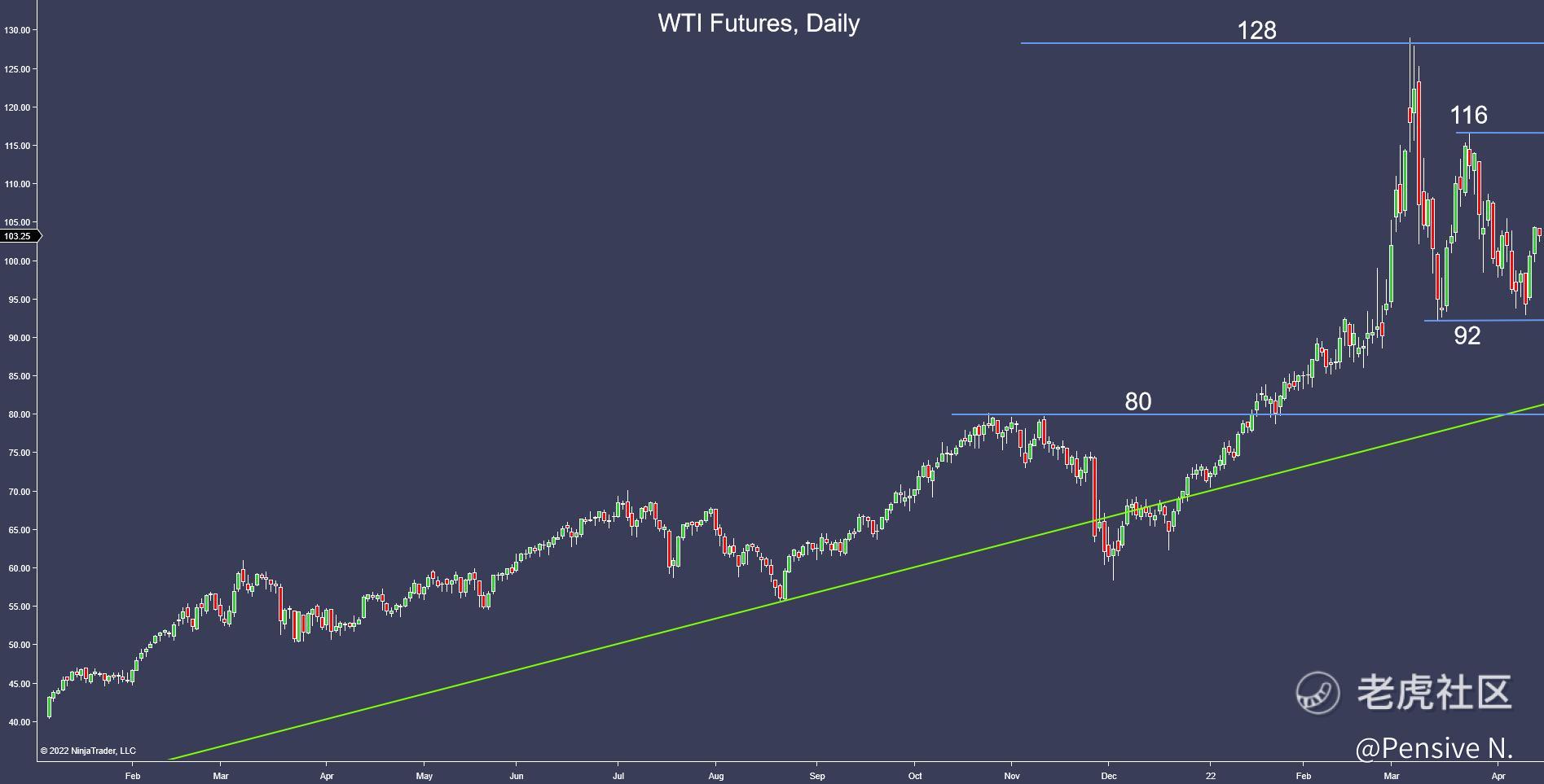 - Oil seems to be trading in a wide range between $92-$116