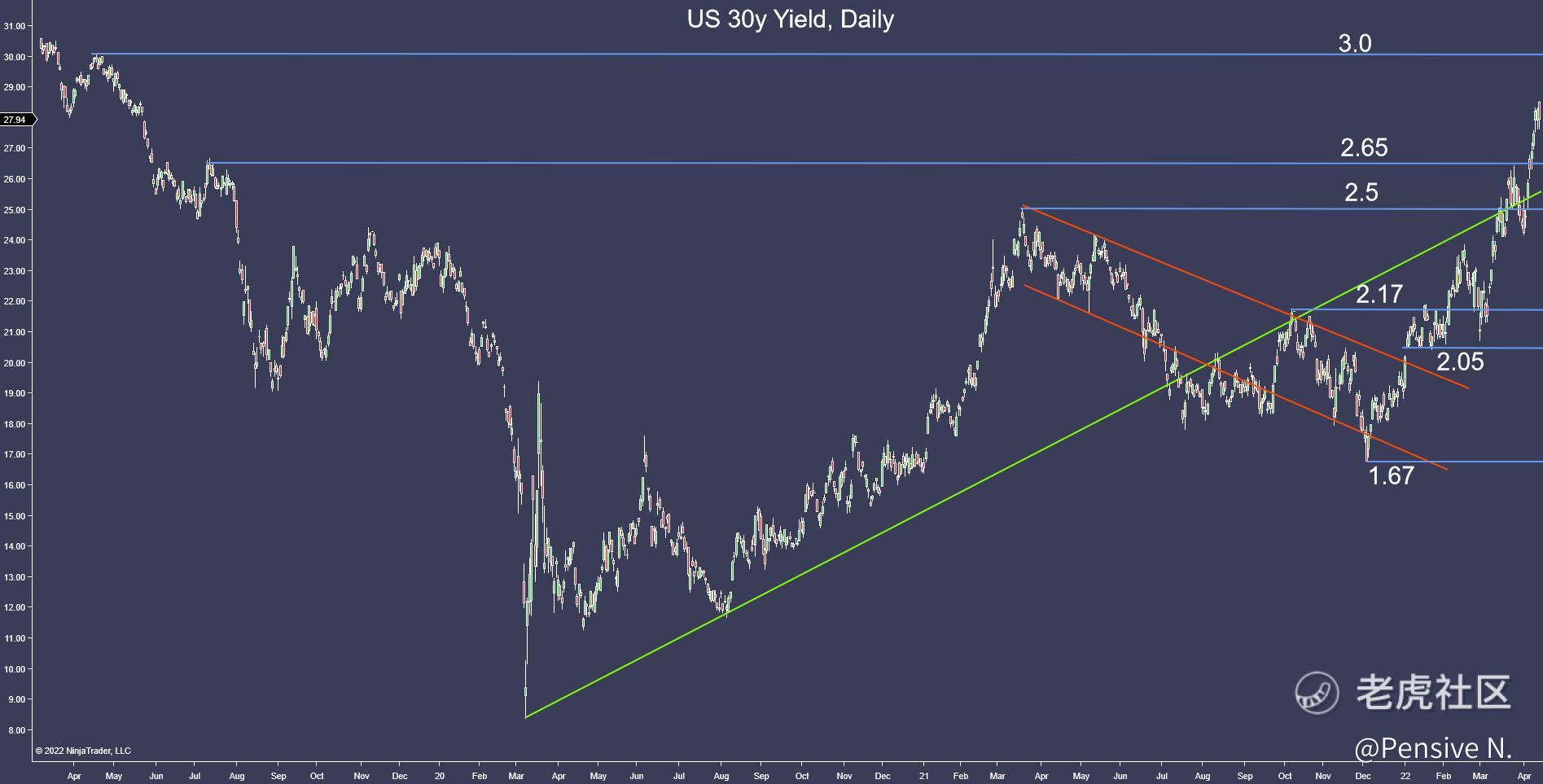 - A test of 3% looks increasingly likely, and critical support is far away at ~2.05%