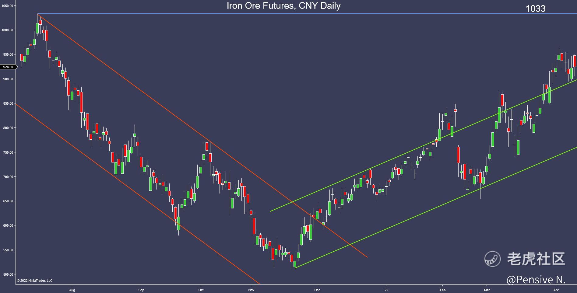 - Iron ore continues to rally, and is still trading above its bullish channel
