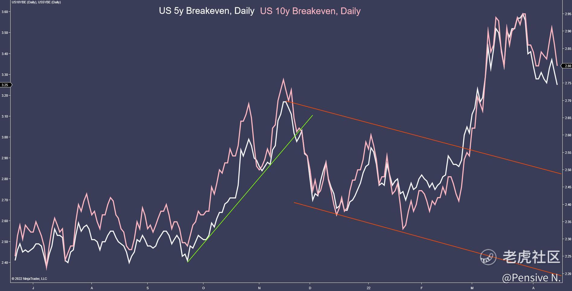 - Breakevens are still near their highs but look to be coming down