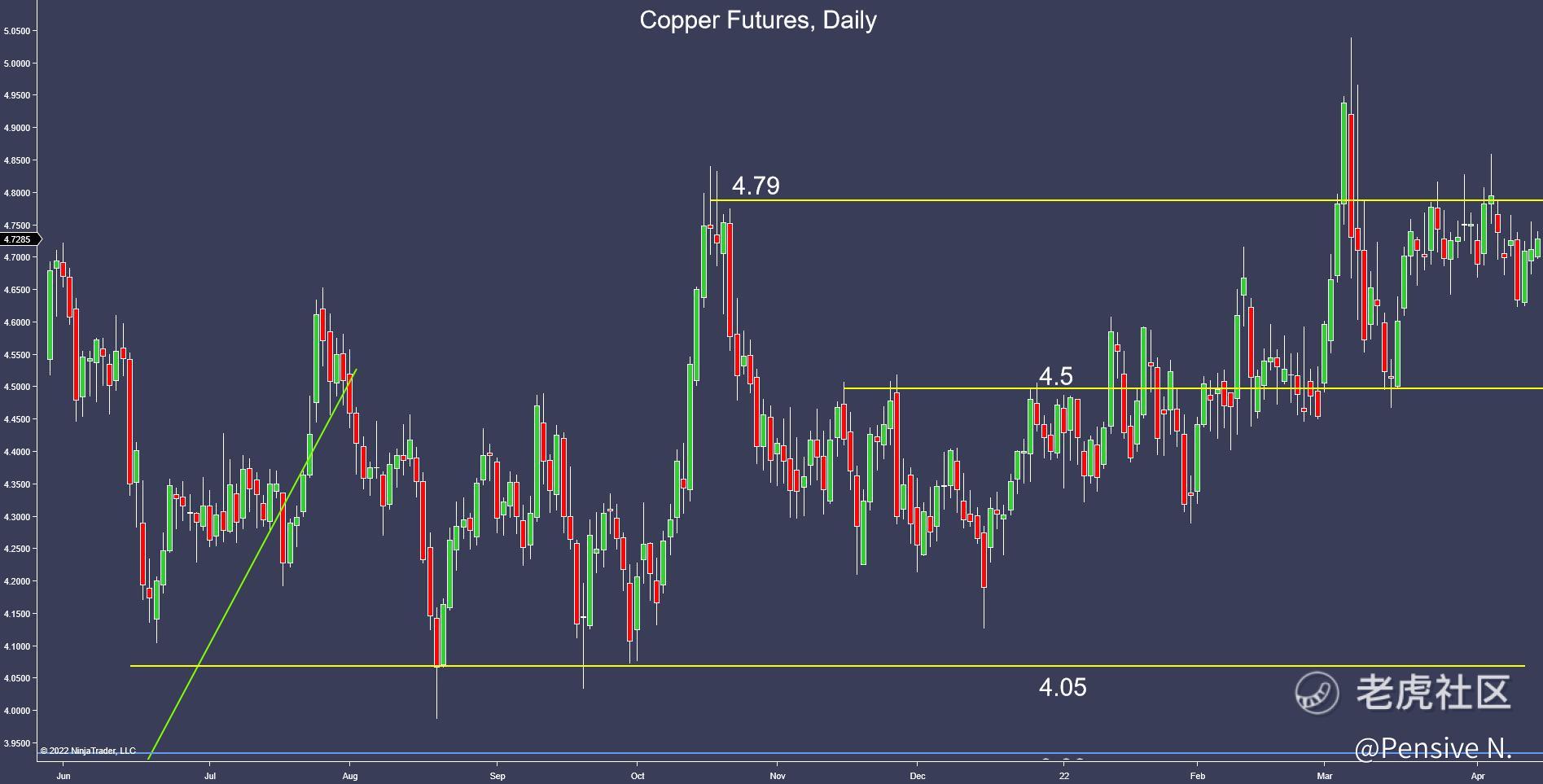- Copper is still trading close to the top of its range ~$4.79