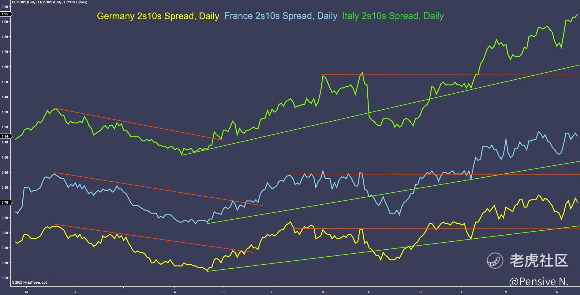 - Italy’s is still making new (steeper) highs