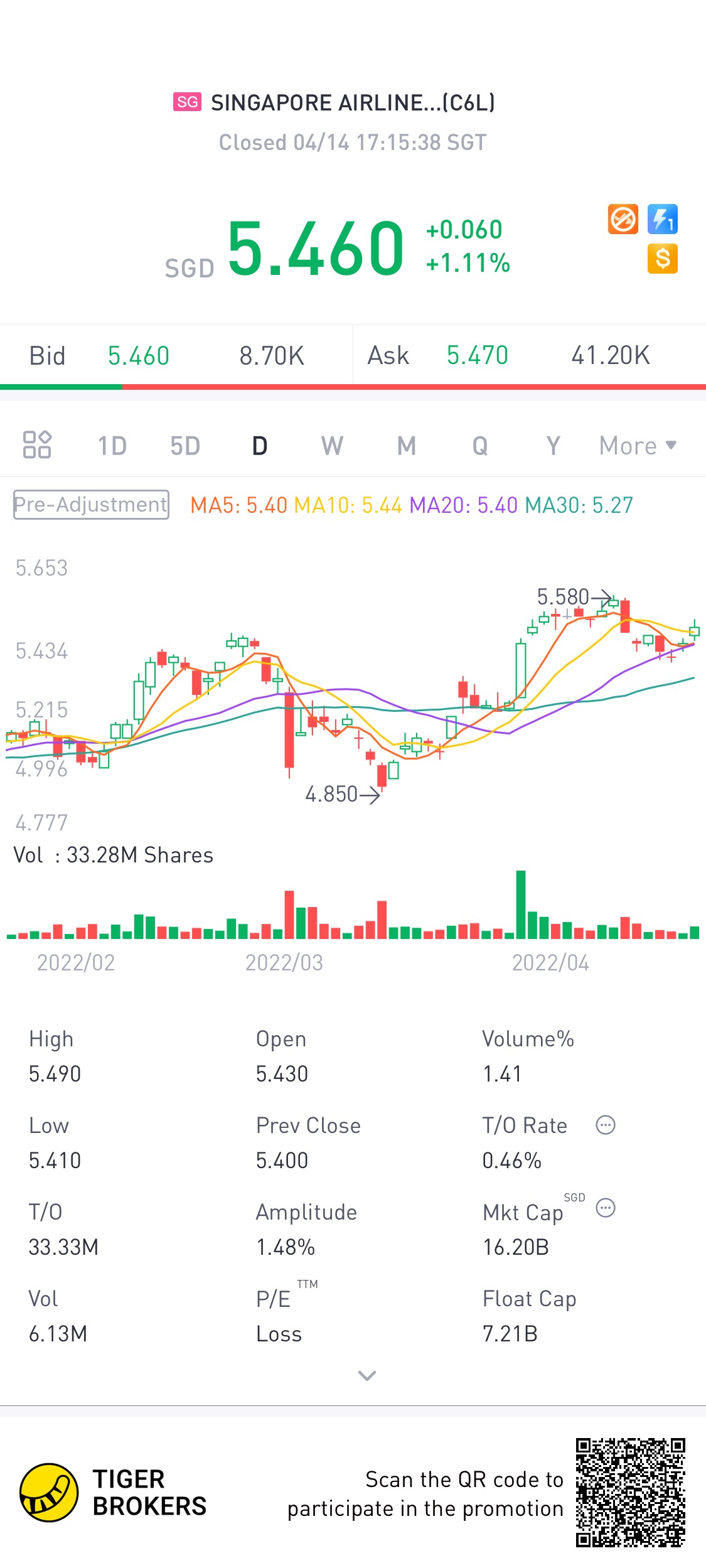 $SINGAPORE AIRLINES LTD(C6L.SI)$[Happy]