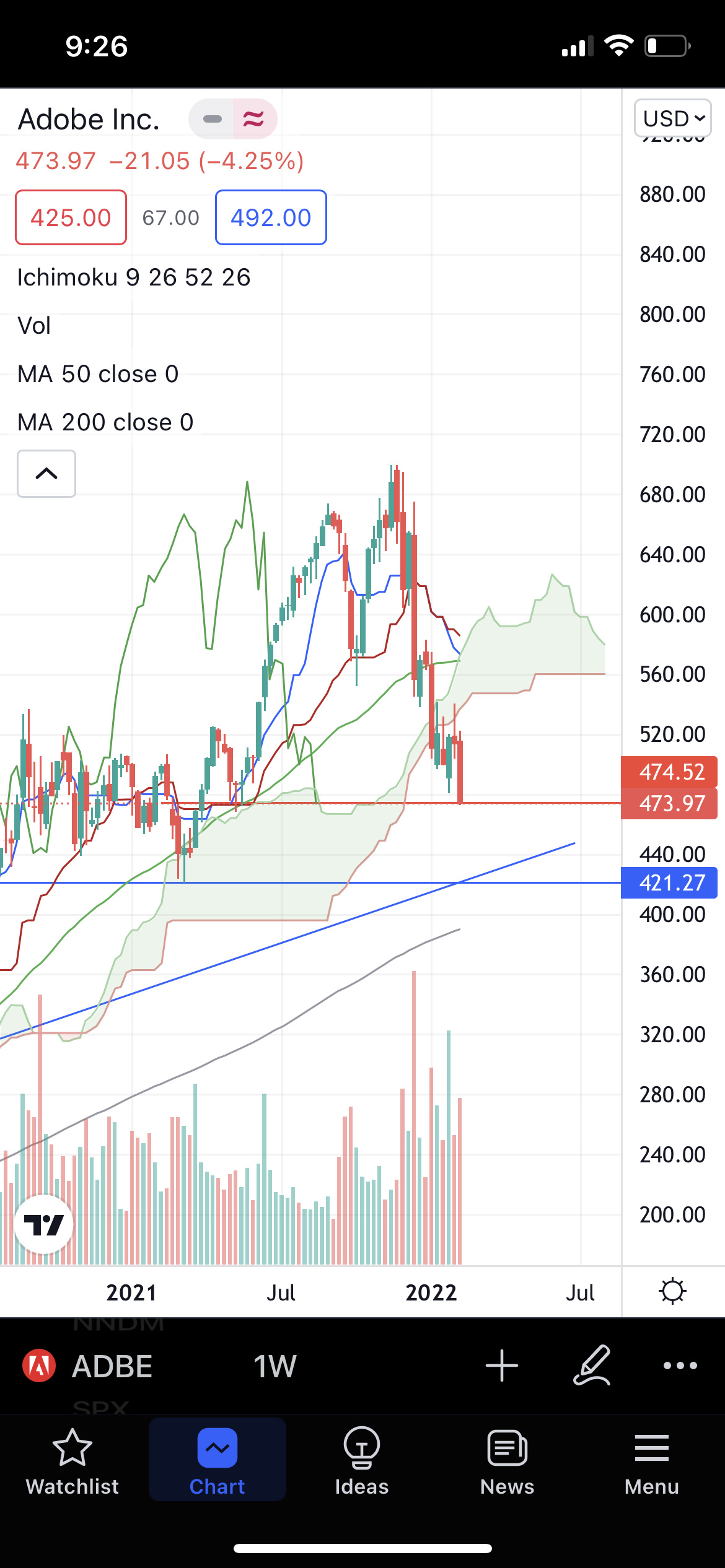 $Adobe(ADBE)$it hits a good support today. Likely to dip slightly below like 470-460 to flush out stop losses. After that is should rebound. If not, next stop is $420