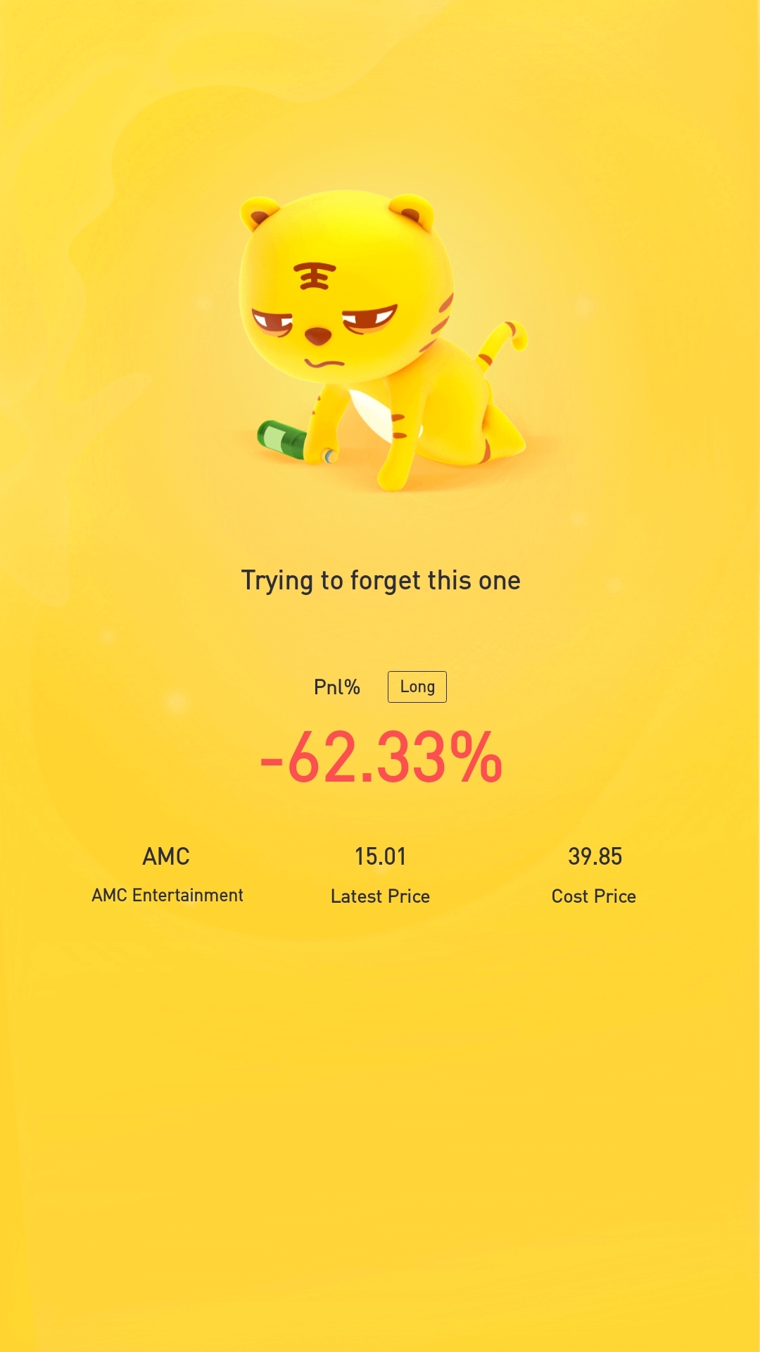 you are in better position than most? your paper loss is  62% only,,, there are some holding with more than that %.    .....n waiting patiently ...  for short squeezing