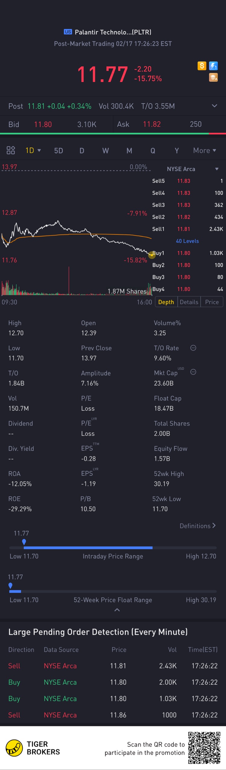 $Palantir Technologies Inc.(PLTR)$Lowest at 11.70, Bearish team will try to short till $8+?
