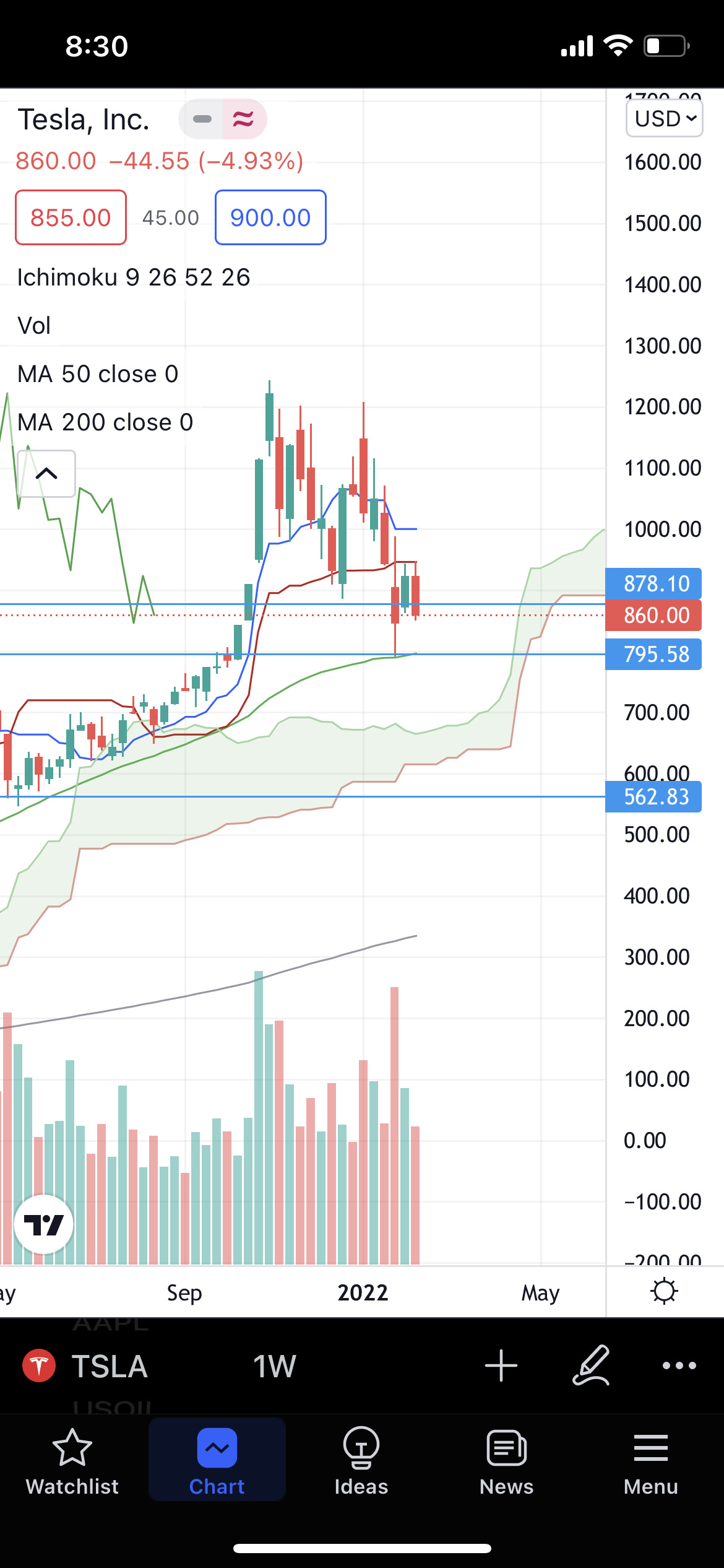 Dont rush to buy. Good support is at 795 where the 200ema is. Next support is at $680 and $562.
