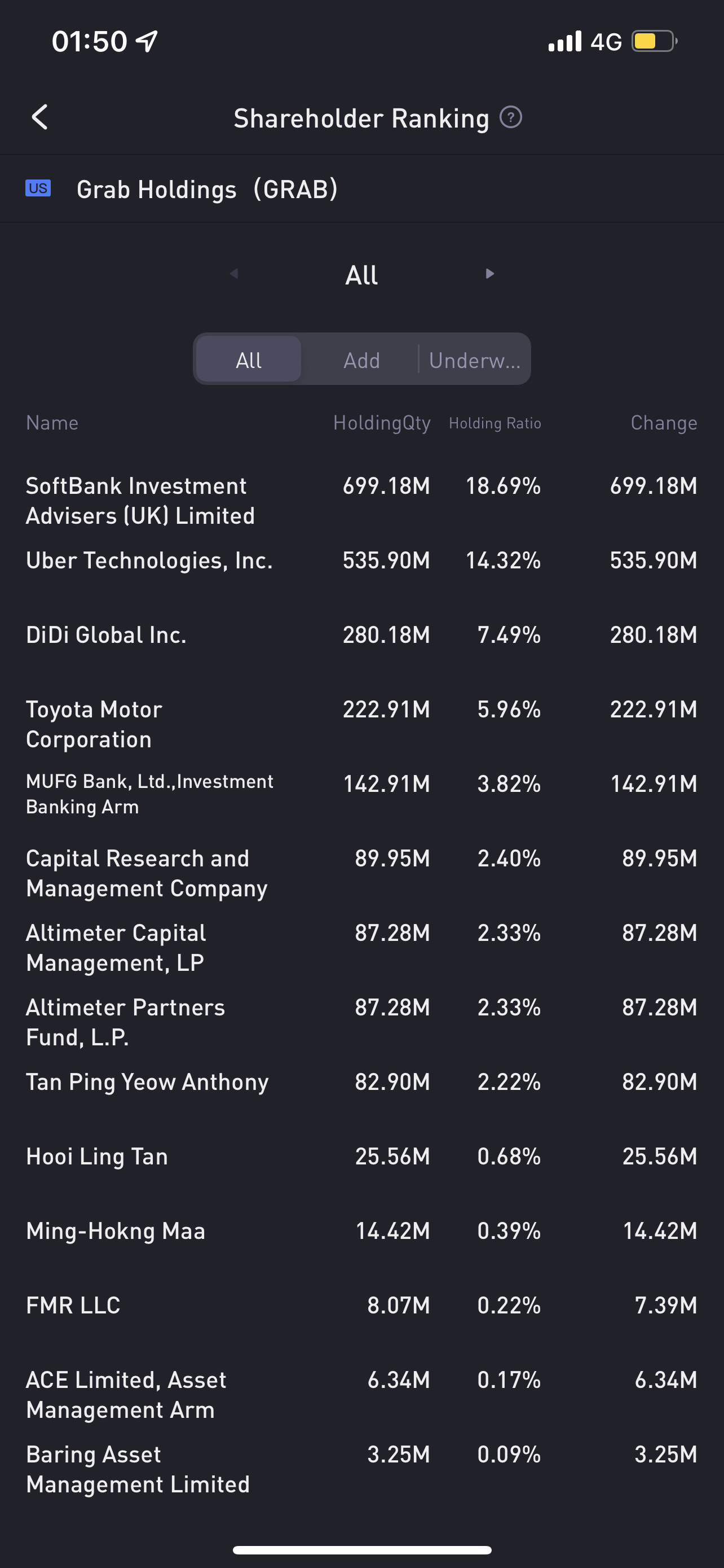 $Grab Holdings(GRAB)$many big company join in the fun and park there money at grab. Was less than 10 company on the list few week ago. Seem likesomething big is happening