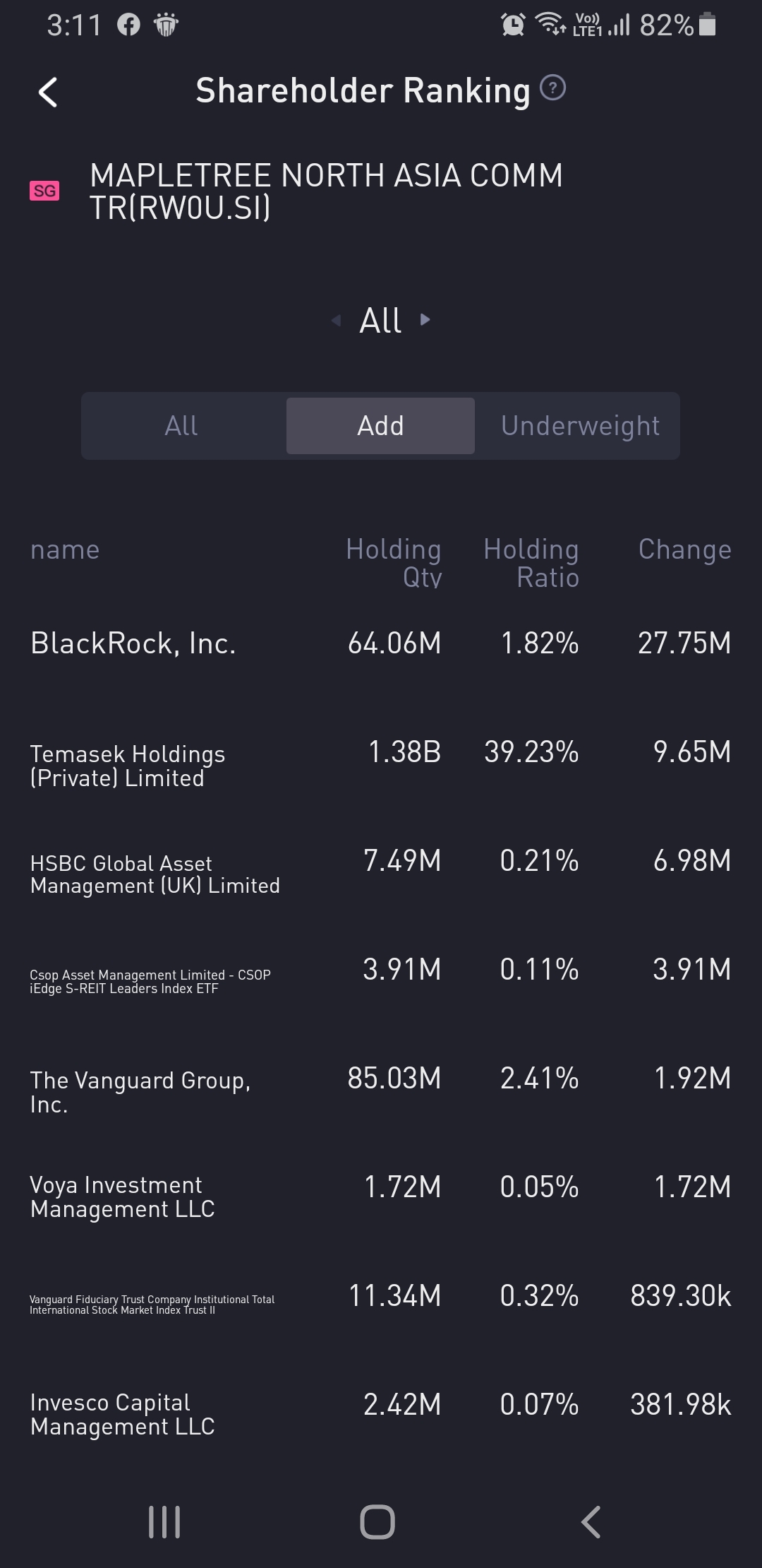 $MAPLETREE NORTH ASIA COMM TR(RW0U.SI)$Blackrock added somemore...