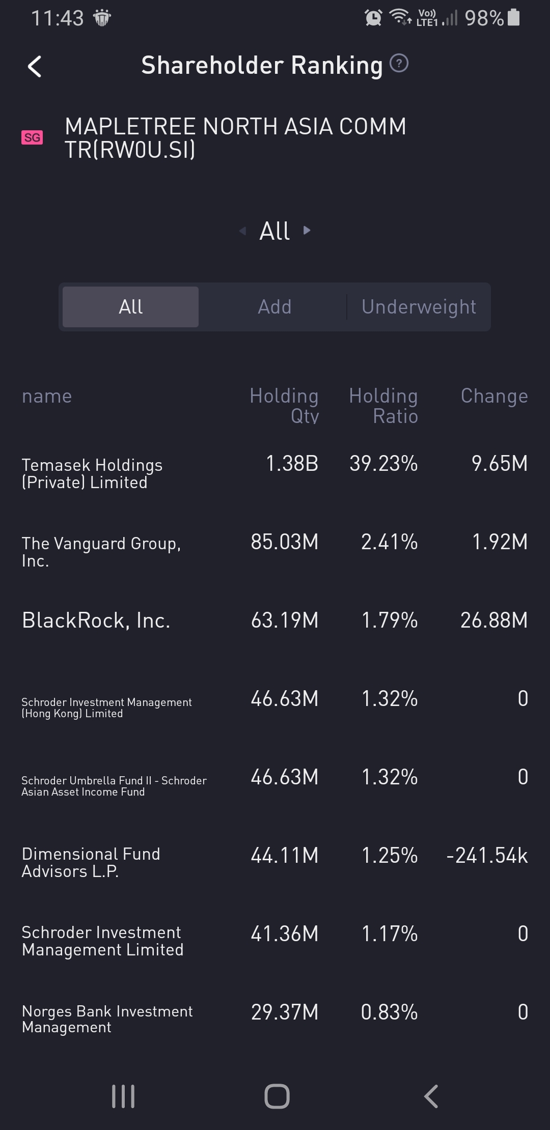 $MAPLETREE NORTH ASIA COMM TR(RW0U.SI)$Wow...Blackrock and Temasek bought so much!!