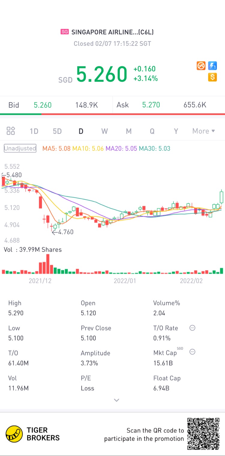 $SINGAPORE AIRLINES LTD(C6L.SI)$ gooo and fly high