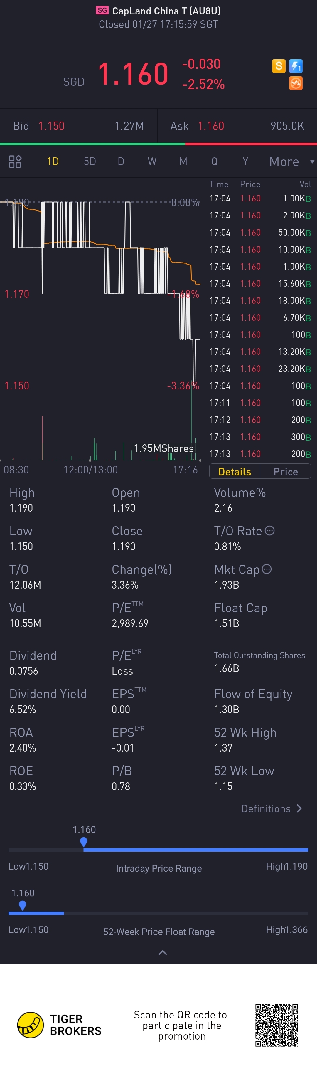 $CapLand China T(AU8U.SI)$waiting for $1.11. who think will drop to that level?