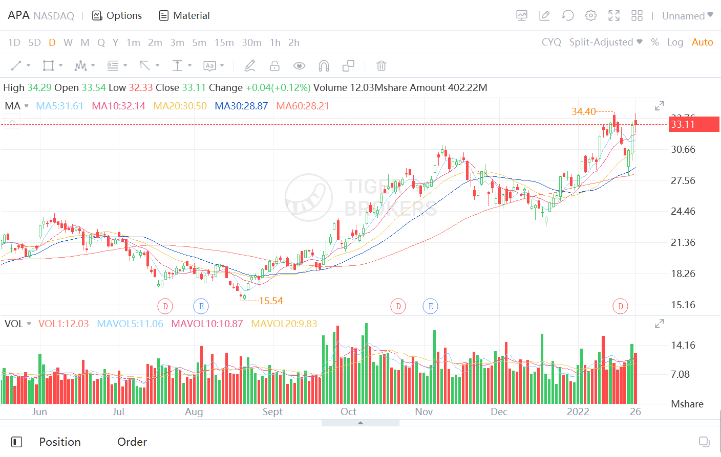 For the most recent quarter, APA was expected to post earnings of $0.89 per share, but it reported $0.98 per share instead, representing a surprise beat of 10.11%. For the previous quarter, the consensus estimate was $0.54 per share, while it actually reported $0.70 per share, a surprise of 29.63%.