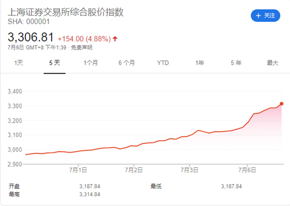 然而,當7月1日A股與港股同時上漲超過2個百分點後,A股當日總交易額突破萬億,市場的情緒終於被點燃。滬指連破兩大整數關口,僅僅只花了三天時間。房地產股在當天突然暴漲,在接下來的兩個交易日中,以券商股爲首的大金融股接過上漲接力棒。經過三天的大幅上漲,許多投資者尚未做出反應。爲什麼A股突然上漲,風向突然改變?這可能與三件事及其帶來的模式變化有關。