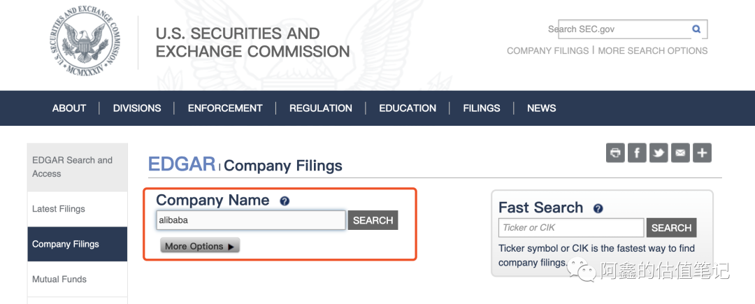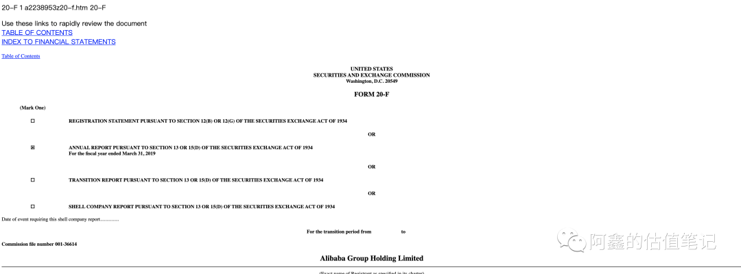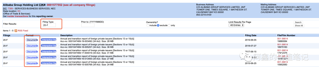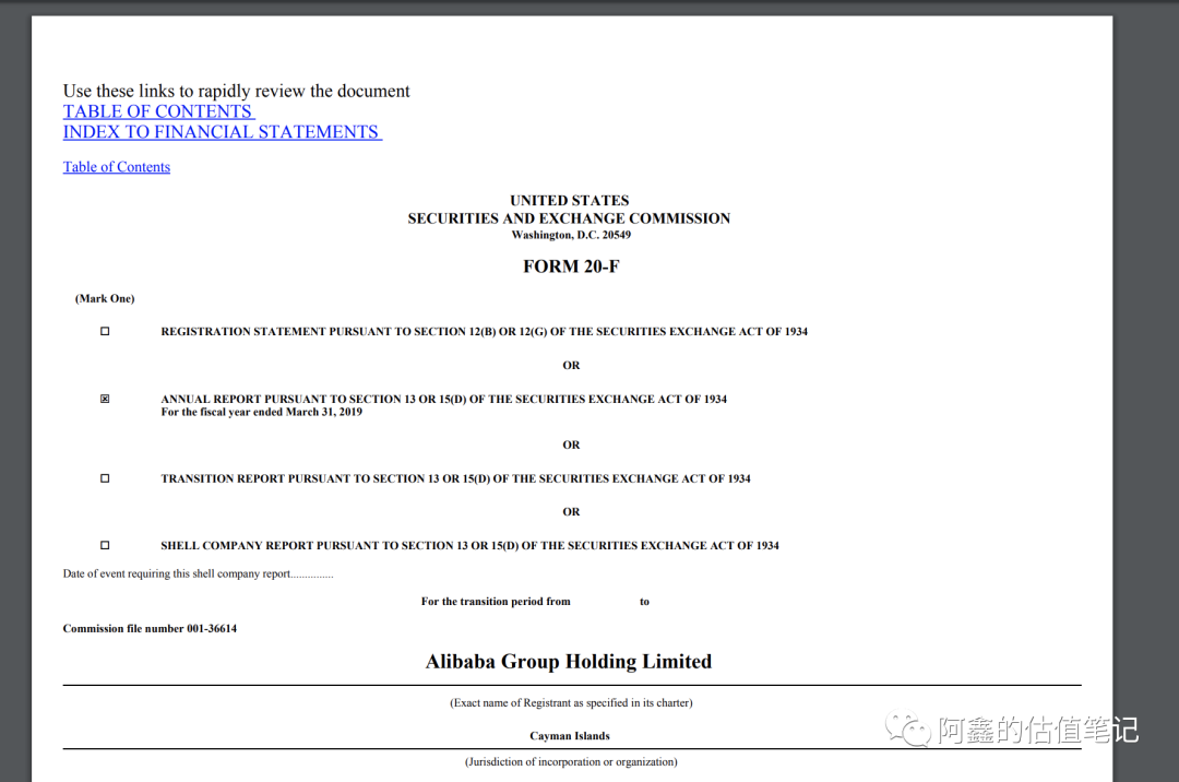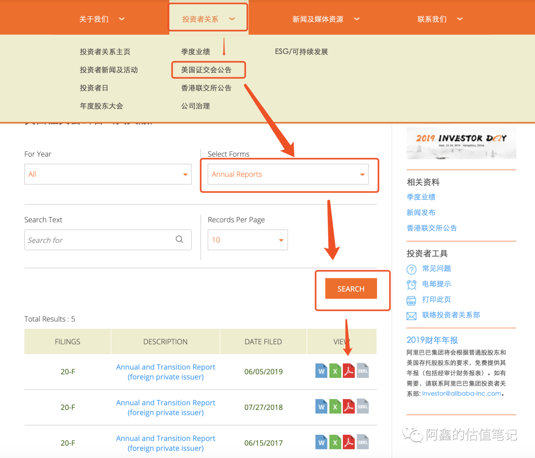 以阿里巴巴爲例,搜到他的投資者關係網站後,根據網站的目錄,可以找到類似「美國證監會公告」這樣的頁面,篩選年報或季報即可獲得。