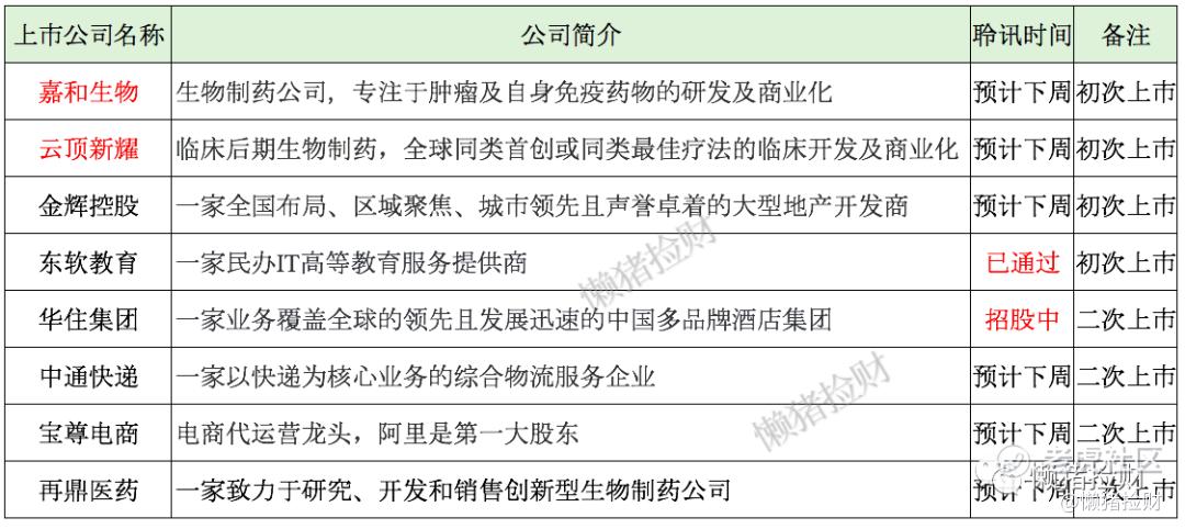 本來還想融點資上樂享互動,後面發現在傳嘉和生物預計15號開始招股,這要真是那就衝突了,不過也要這周通過聆訊纔有可能。華住也通過聆訊了,近期通過聆訊的還真不少,我也統計了一下,竟然有8個,其中2個是醫藥,1個地產,1個教育,4個是美股回港二次上市。藍月亮不想提了,不知道是不是在等中秋。