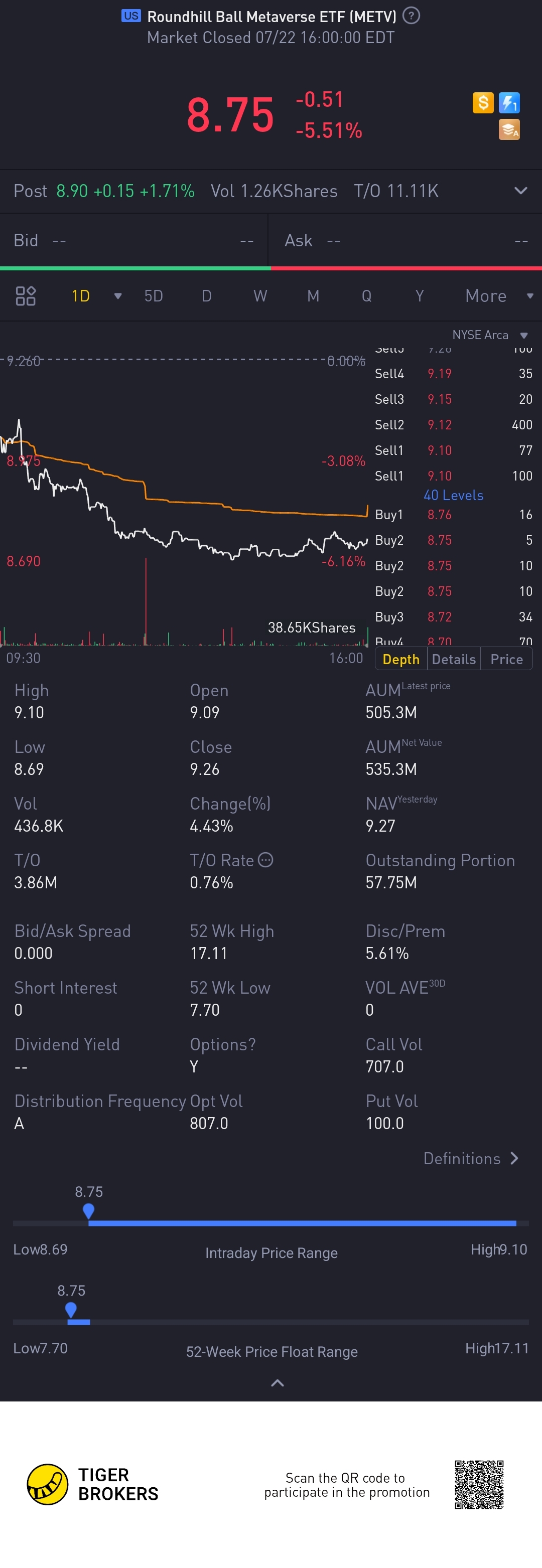 $Roundhill Ball Metaverse ETF(METV)$8.50 n below is a good entry point unless metaverse flop