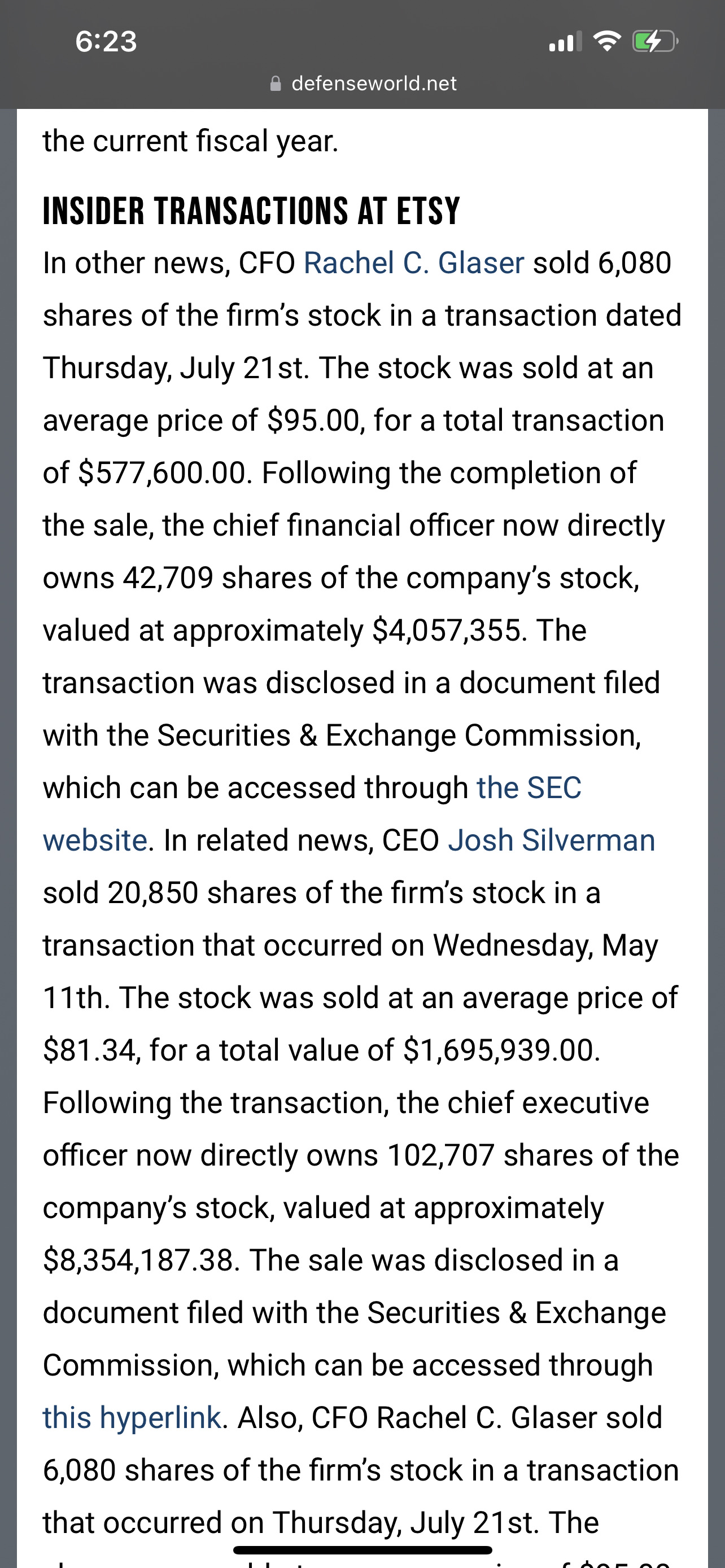 $Etsy(ETSY)$why is the insider selling the stocks?