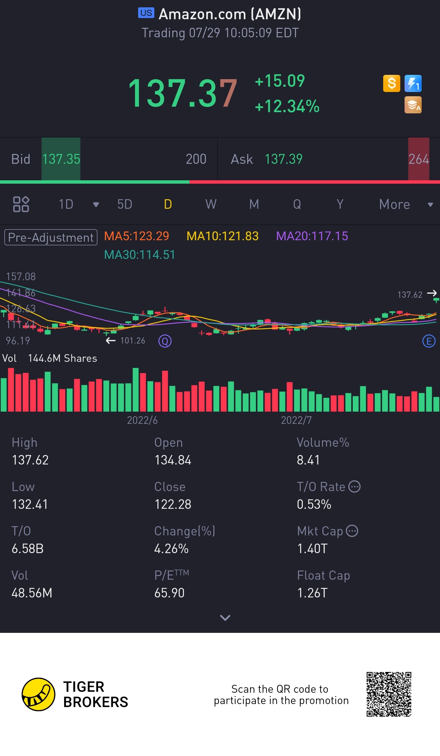 $Amazon.com(AMZN)$very strong move for a large cap tech stocks and good earning reports. It seems that cloud division continues to thrive. The strong results tempered fear of recession.