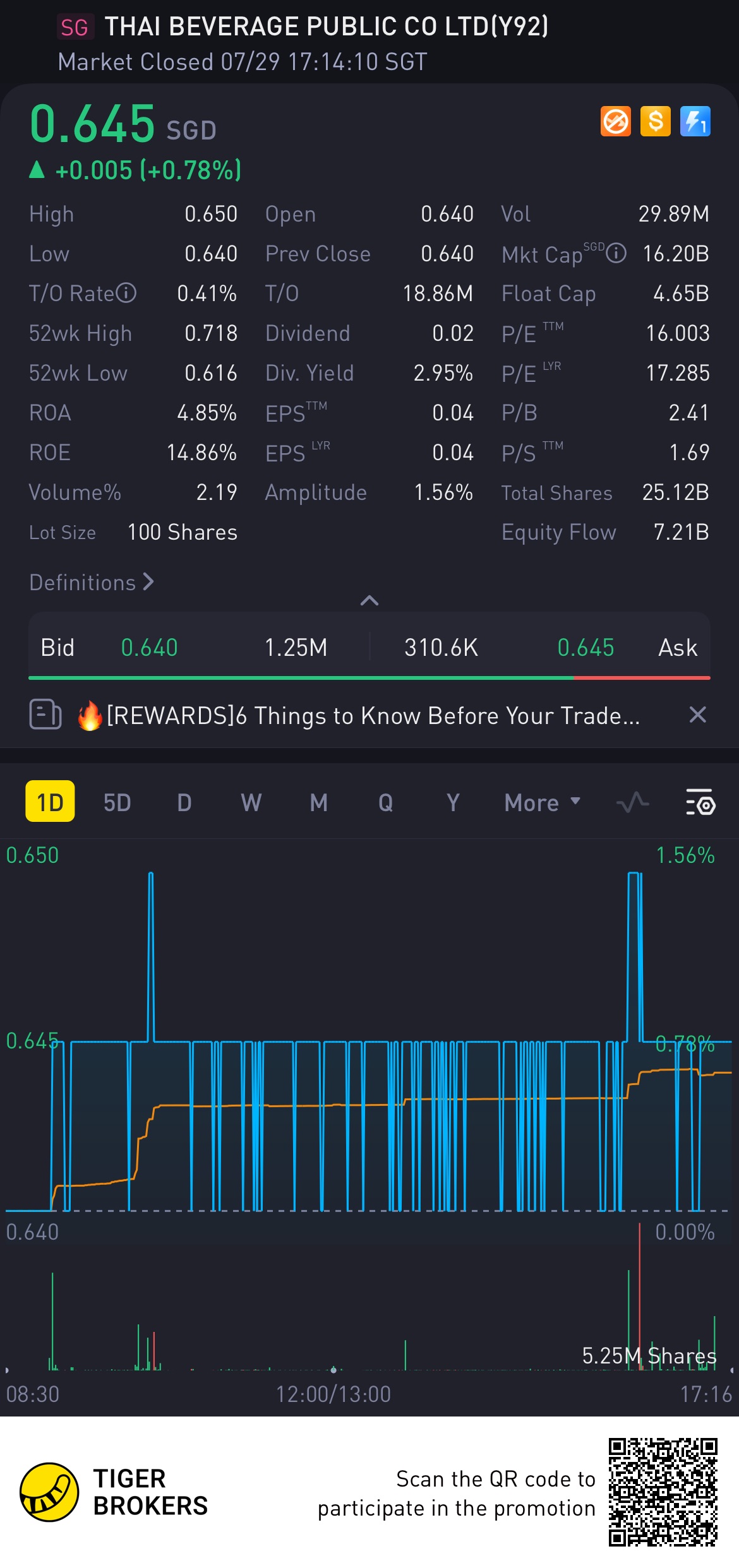 $THAI BEVERAGE PUBLIC CO LTD(Y92.SI)$good