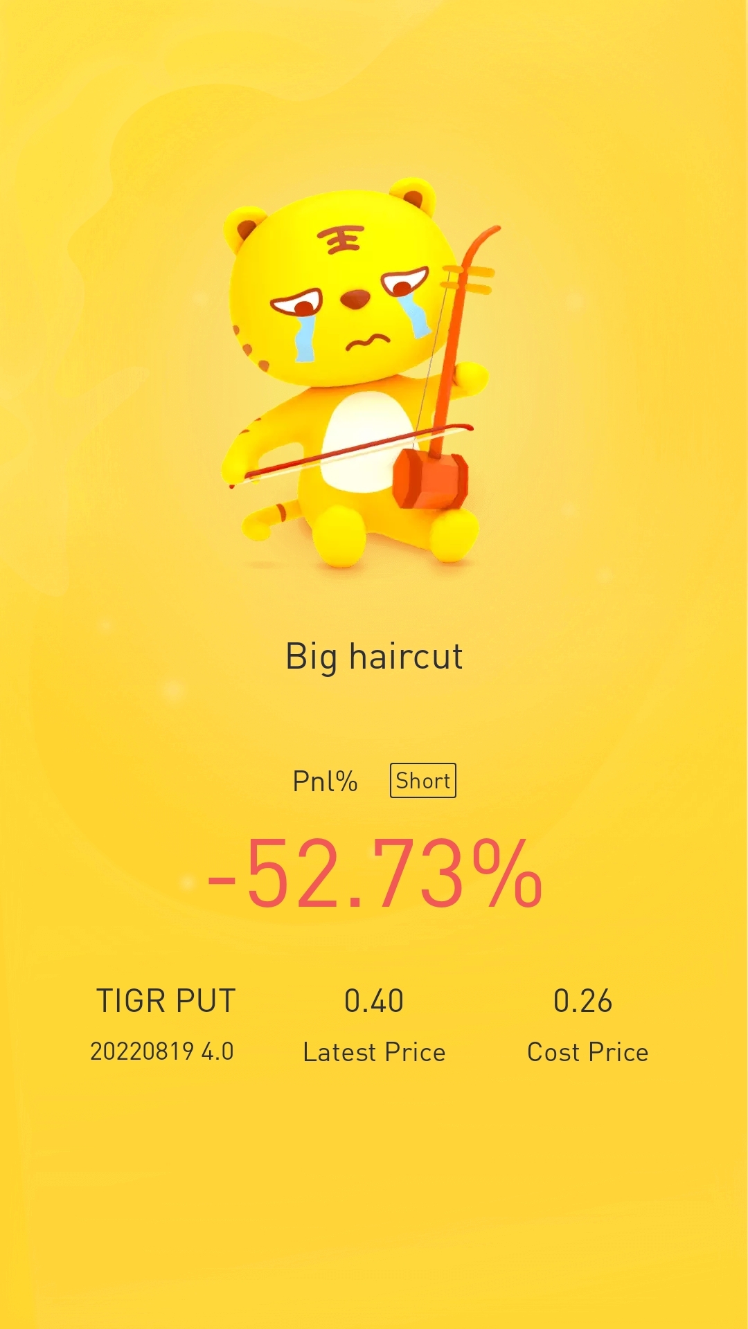 $TIGR 20220819 4.0 PUT$sell put, strike price 4.00, entry price 4.8 ,expired 19/8/22, no gain no pain ... be affected by SEC delisting news.