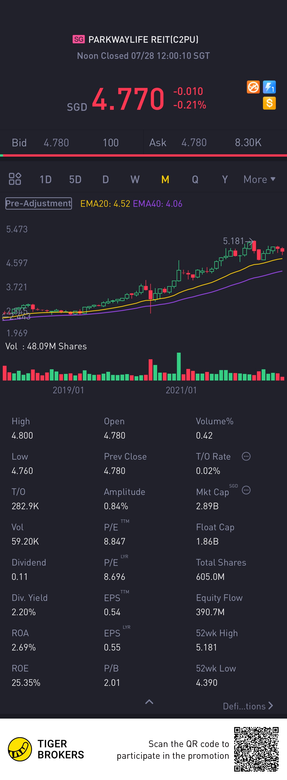 $PARKWAYLIFE REIT(C2PU.SI)$Good one
