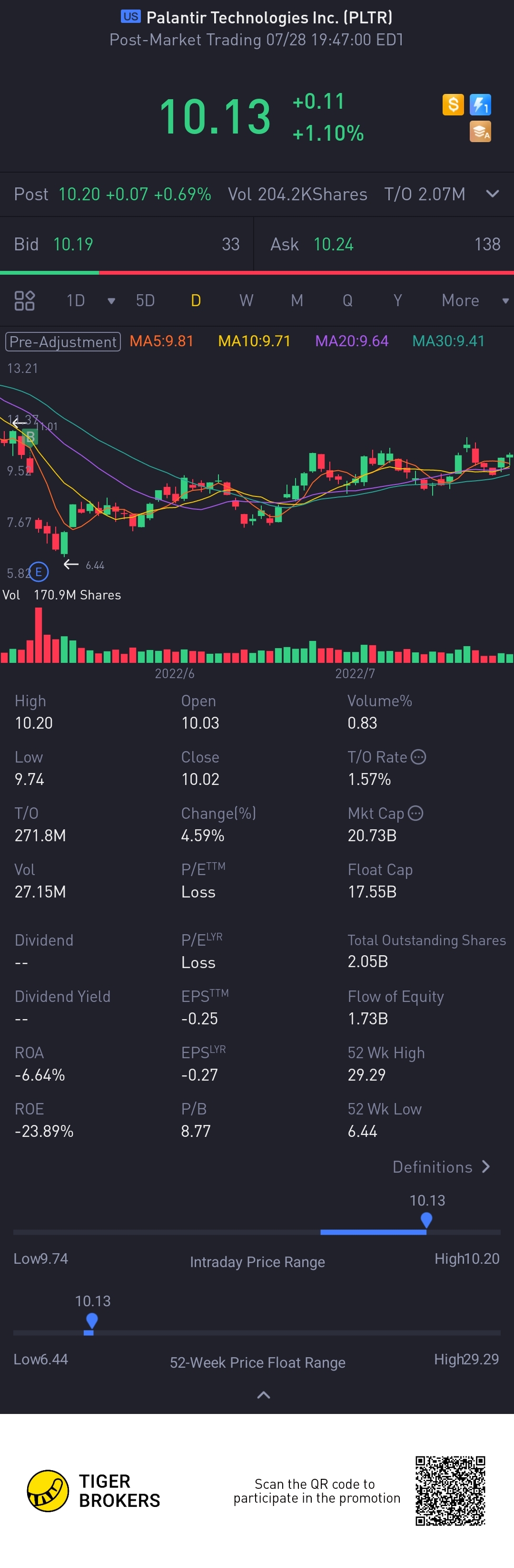 $Palantir Technologies Inc.(PLTR)$controversial stock. Looking good to recover. Will be happy with 15 by the end of the year