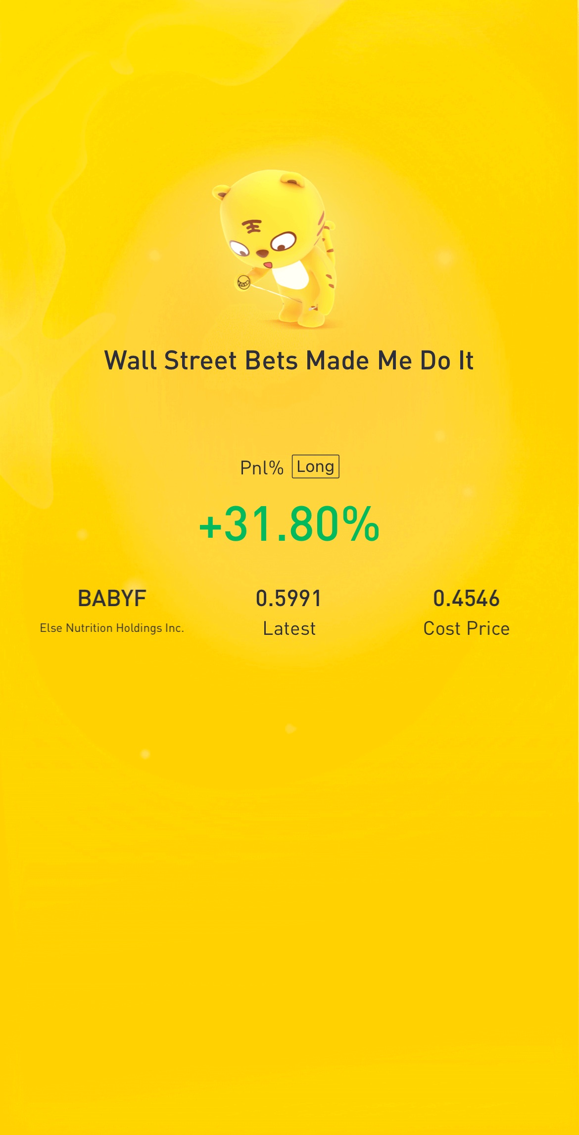$Else Nutrition Holdings Inc.(BABYF)$Not a wallstreetbet stock. Simply a gem stock which is overlooked. Looking at 500% gains by end of year when Else nutrition completes FDA approval for all vegan infant formula.