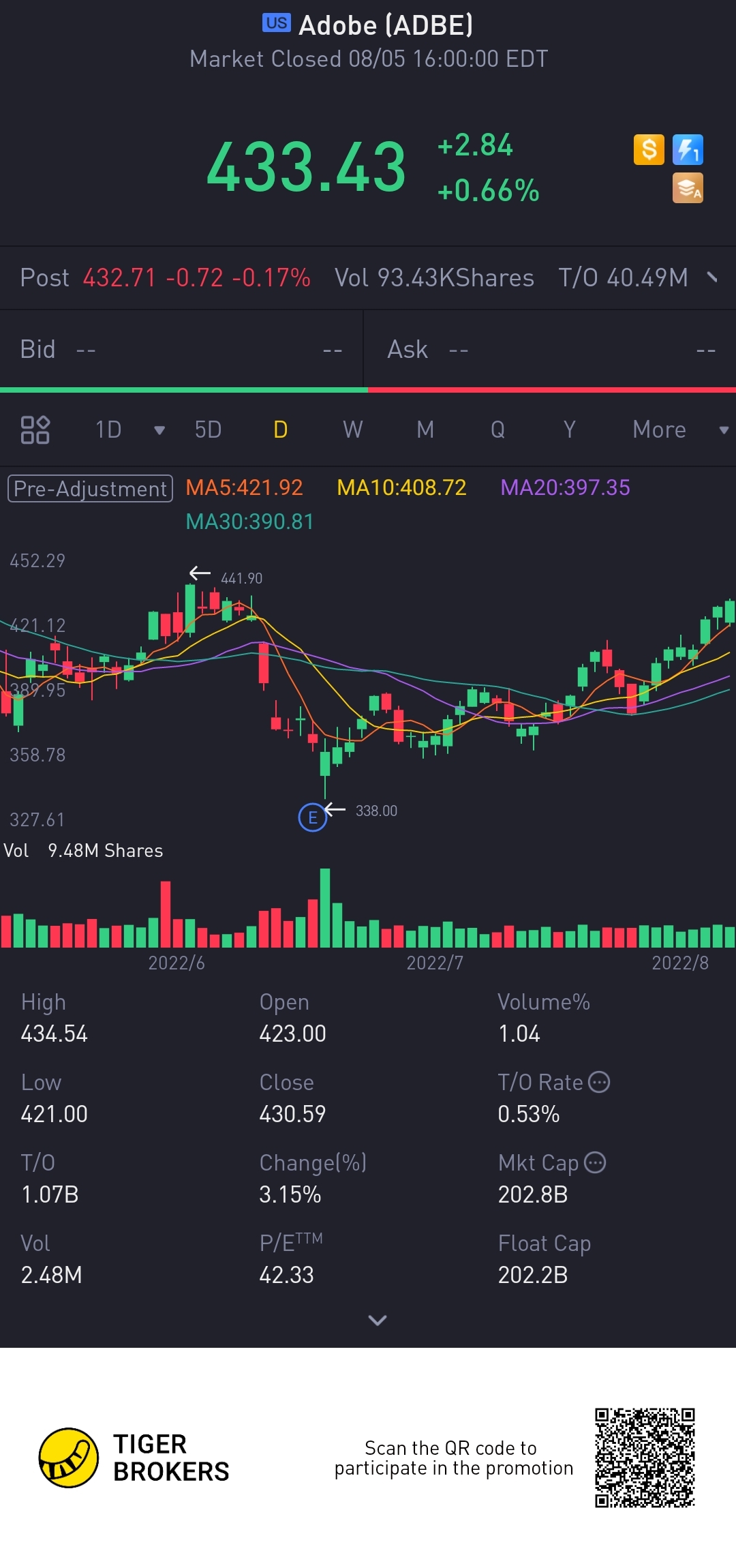 $Adobe(ADBE)$as mentioned long ago adobe will always be a great buy! But do wait till it reeach support level as shares are still very volatile now.